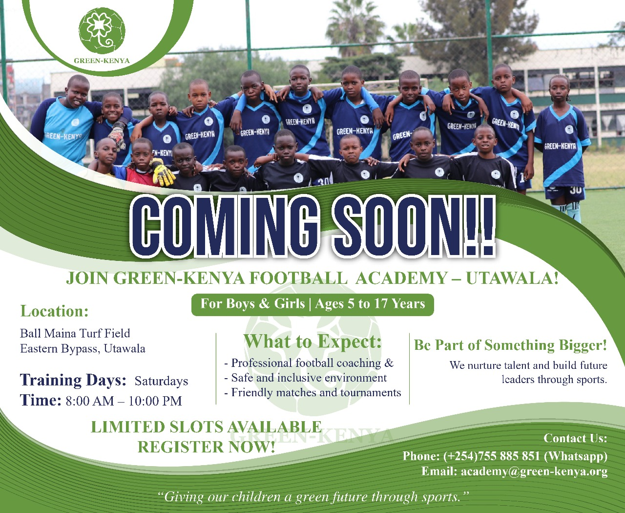 Green-Kenya is launching a Football Academy in Utawala to nurture young talent and develop future leaders through sport.